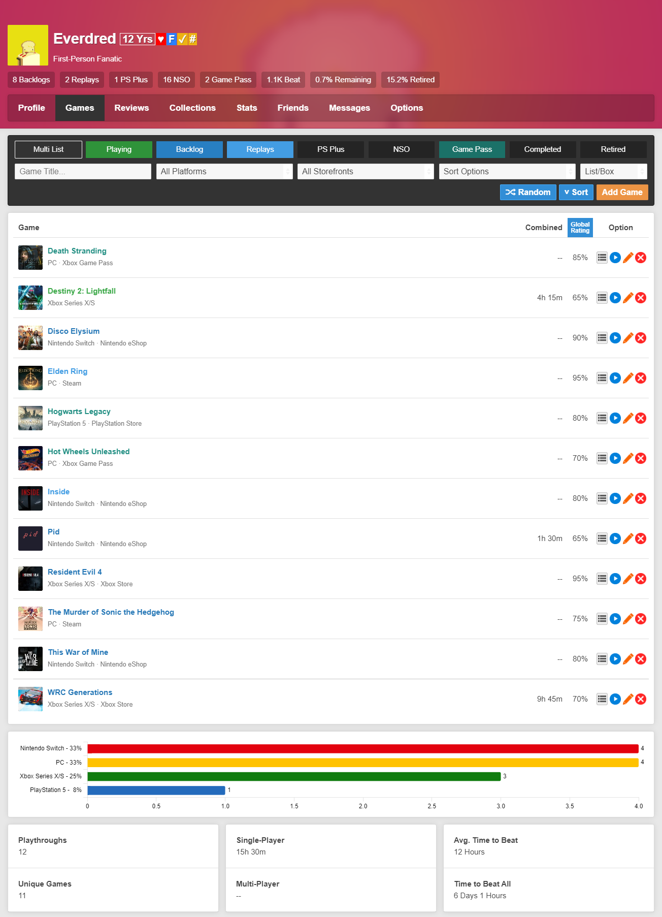 Manage the games you haven't quite beat yet or replay your favorites.Custom Lists